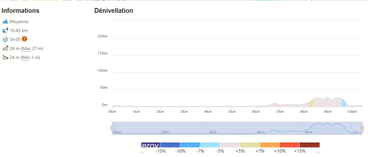 Distance de 12 à 15 km suivant les intinéraires, denivelé de 5 à 50m