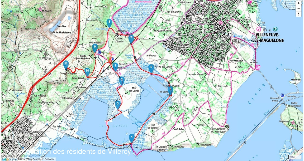 Parking départ de la randonnée : Parking du rocher de Magdelonne, aprés Mireval suivre Mas Andros avant la déchetterie, a 25 km